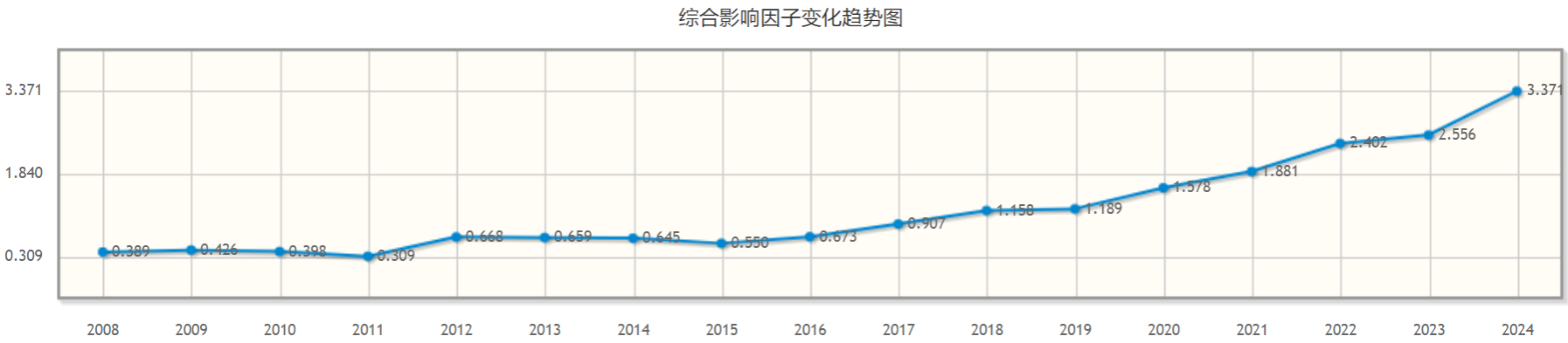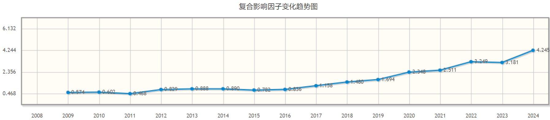 本刊创办于1986年,自2011年起更名为《研究生教育研究》并由我校和中国学位与研究生教育学会共同举办。根据《年报》2011-2024年统计数据,《研究生教育研究》“复合影响因子”从0.468升至4.245,增长807%;“综合影响因子”从0.309升至3.371,增长991%;“复合总被引频次”从421升至2710,增长544%;“影响力指数(CI)”教育学学科排序从2014年的69/246(注:2021、2012、2013年未统计)升至46/325;自2017年以来,期刊长期稳居Q1分区。