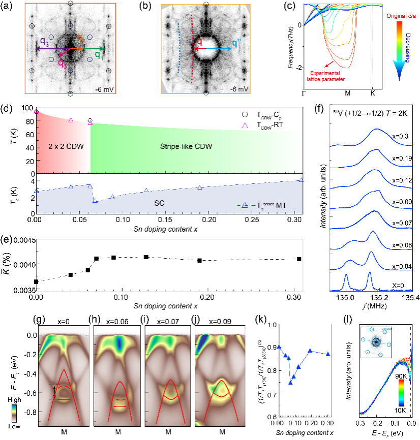 图1:锡掺杂CsV3Sb5的相图和新型电荷条纹序的谱学证据