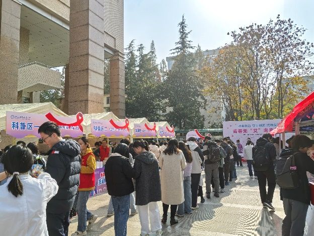 为积极响应第38个“世界艾滋病日”全球号召,进一步推动校园艾滋病防治宣传教育,校医院联合附属第一医院、生命科学与医学部及属地疾病预防控制中心等部门,于2025年11月15日至12月30日期间,共同组织开展了以“社会共治,守正创新,终结艾滋”为主题的世界艾滋病日宣传月系列活动。本次活动由芳草社校医院志愿服务分队、生命科学与医学部医学英才班党支部及生命科学与医学部学生会共同承办,面向全校师生,取得了良好的宣传教育效果。