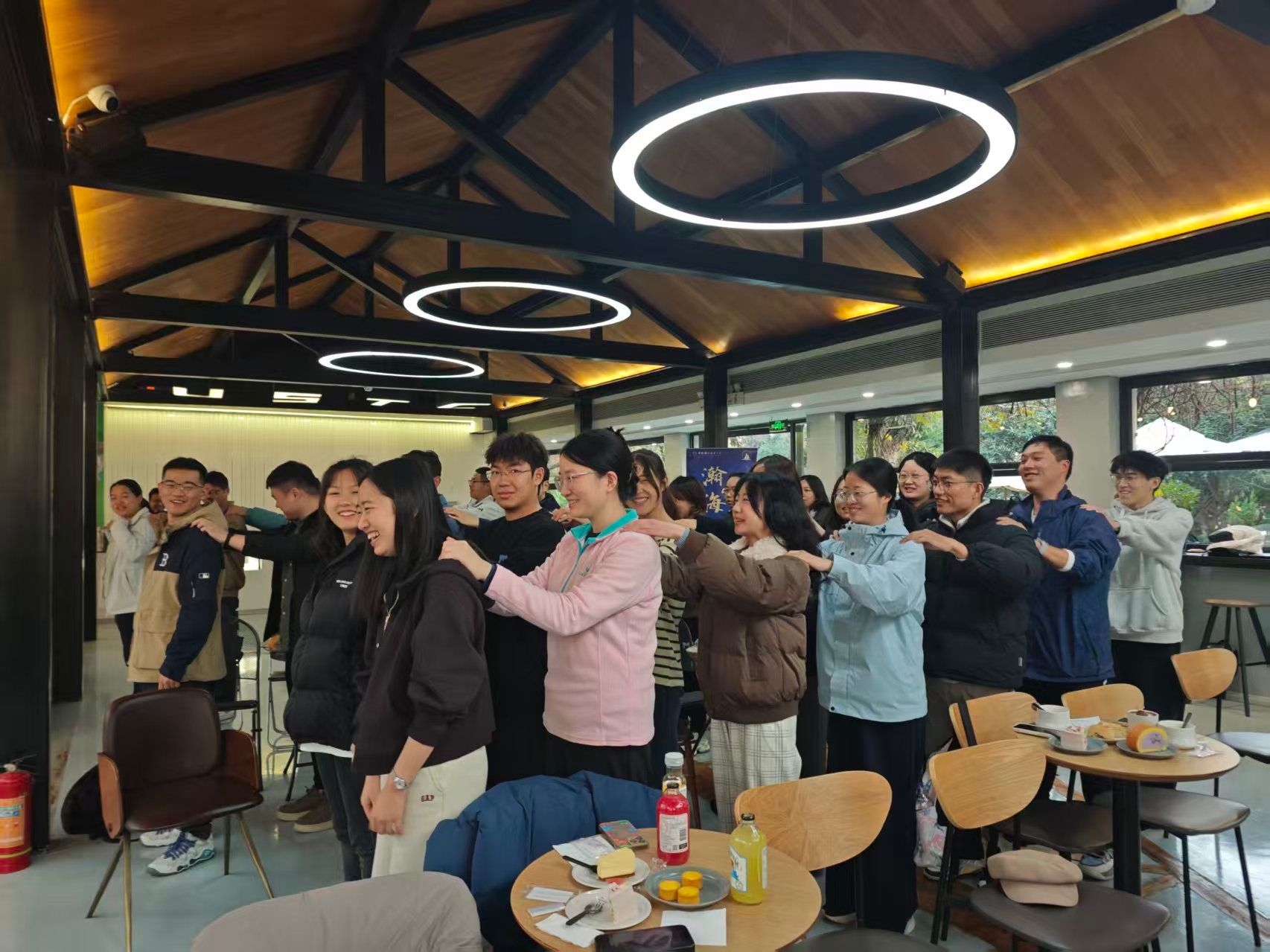 活动伊始,在三位老师的亲切带领下,全场师生共同体验了“暖心按摩操”互动小游戏。简单有趣的动作配合,不仅有效缓解了久坐的疲惫,更迅速拉近了彼此的距离,现场笑声阵阵,气氛温馨融洽。