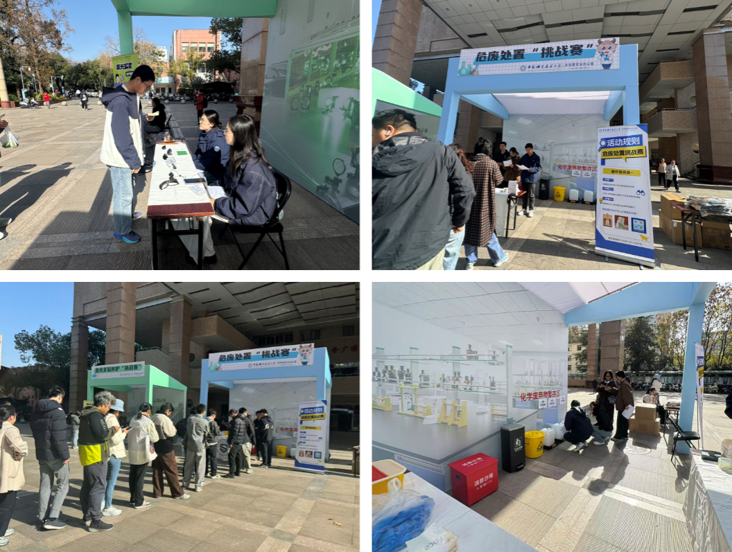 11月28日,在东校区举办的“危废处置挑战赛”和“激光实验防护挑战赛”以趣味互动和场景模拟的形式,将严肃的安全规范转化为可参与、可体验的沉浸式活动。贴近实际的场景复现,吸引了大量师生驻足观看、踊跃参与。活动现场气氛热烈,大家在互动学习中深化了对危废处置流程的理解,同时掌握了实实在在的防护技能。