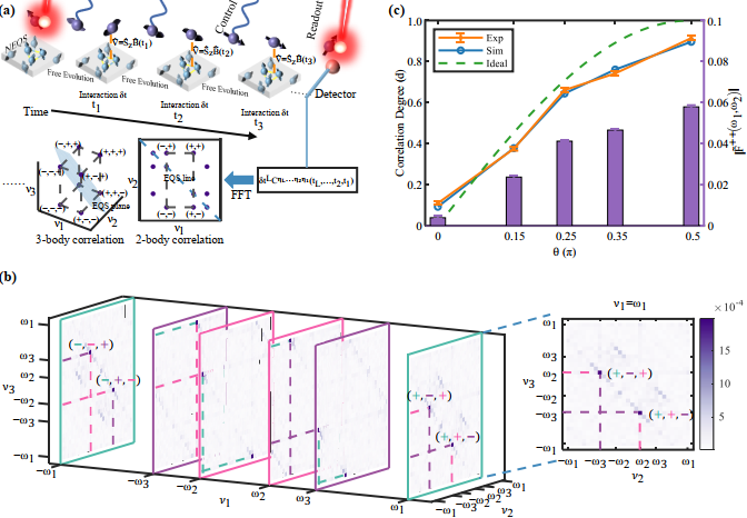图:(a)方法概念图。(b)三体关联的重构。(c)通过关联累积量可视化量子纠缠的建立过程。
