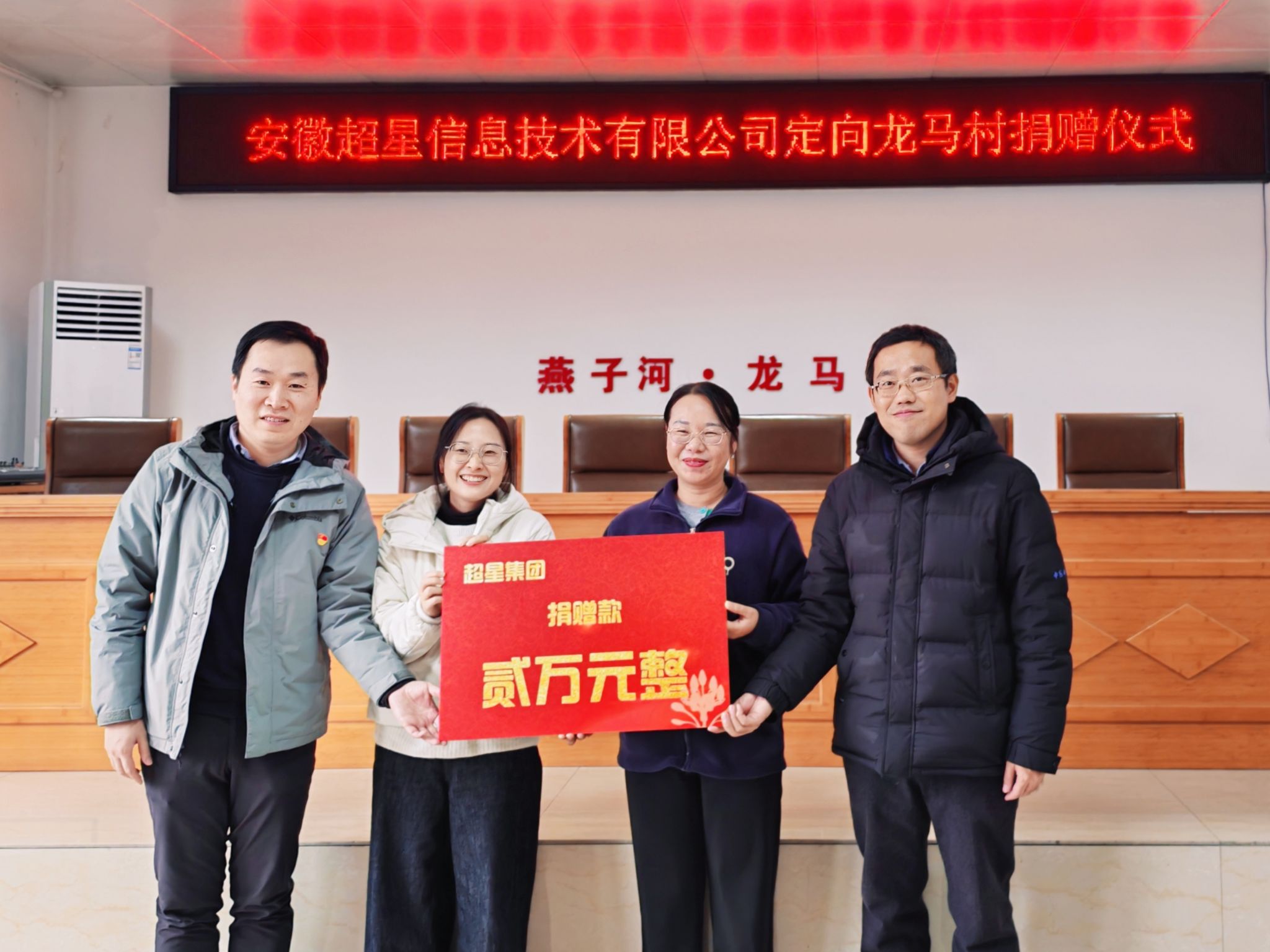 座谈会召开前举行了安徽超星信息技术有限公司定向龙马村捐赠仪式。超星集团安徽公司向龙马村捐赠贰万元,定向用于乡村事业发展。