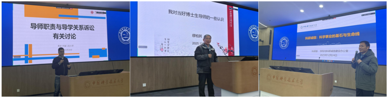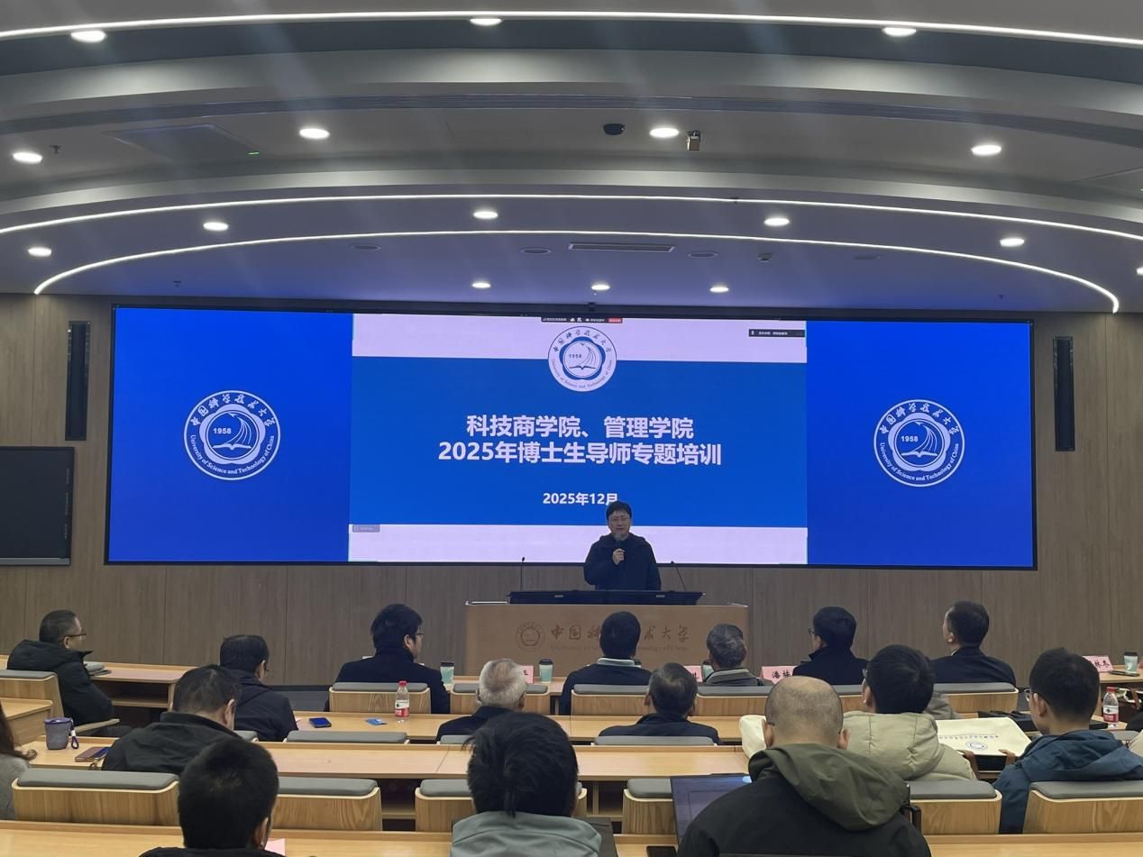 为深入贯彻落实研究生教育立德树人根本任务,进一步提升博士生培养质量,加强导师队伍建设,科技商学院、管理学院12月24日在东校区第五教学楼5101教室组织举办2025年博士生导师专题培训。本次培训特邀学院创院元老之一缪柏其先生、中国人民大学周详教授、校学风与科研诚信建设办公室李芳平副主任作专题报告。