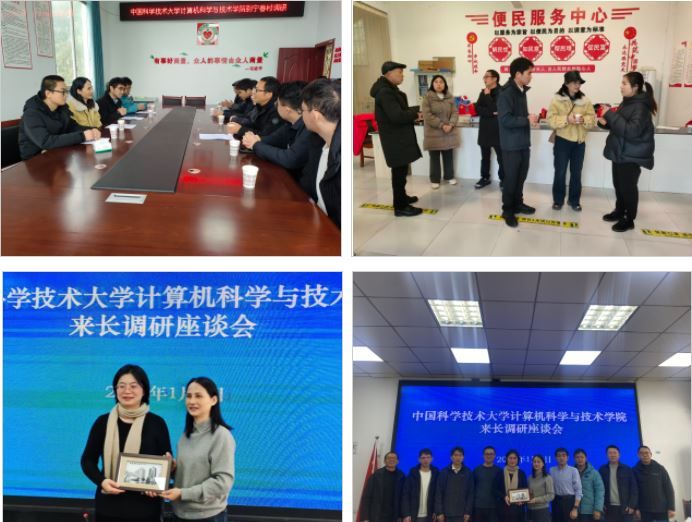 为深入了解选调生在基层的工作实况,进一步巩固校地协同育人机制,2026年1月4日至6日,中国科大计算机学院党委副书记宫晓梅带队,与学院团委书记王海龙、团委副书记(兼职)徐亦舜、教师徐伟一行,赴重庆市江津区、四川省长宁县、贵州省黎平县开展选调生走访调研与校地交流活动,看望慰问在基层工作的学院优秀毕业生,并与当地领导座谈,共话人才培养与合作。