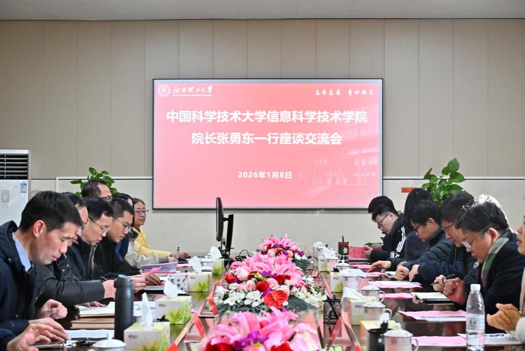 座谈会上,我院执行院长张勇东介绍了学院在学科发展、人才引进、科研创新等方面的做法探索与实践成效。双方就如何加强学科建设、优化科研管理等问题进行了深入探讨。双方还就未来的合作意向进行了沟通,达成了初步共识。座谈会前,学院一行参观了校史馆和图书馆,直观感受该校深厚的文化底蕴与办学特色。