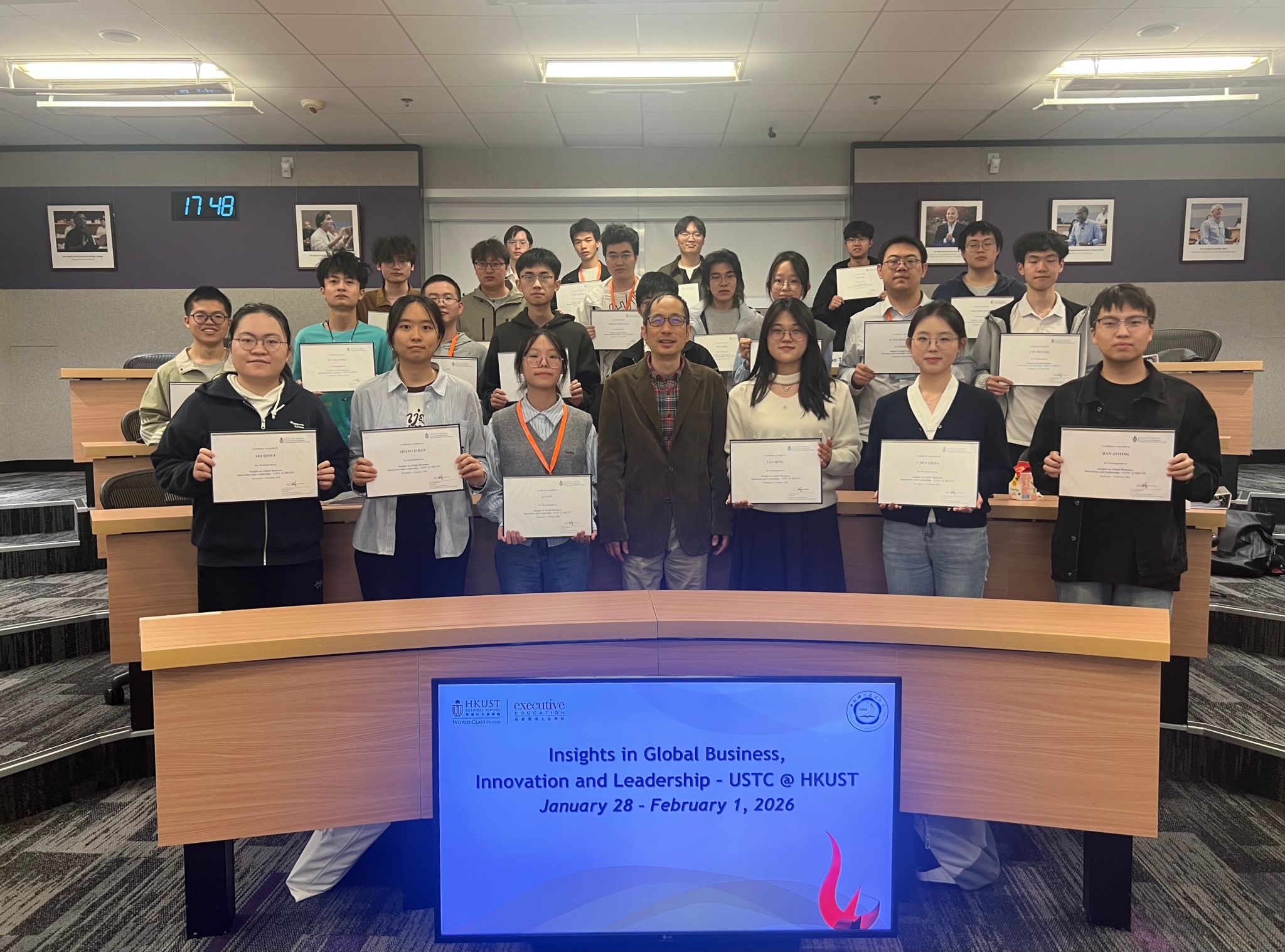为切实提升本科生培养质量,加强本科生跨文化交流能力与创新实践能力,深入推进国际化人才培养,1月27日至2月2日,管理学院开展第四届“全球领导力与未来科技商业领袖”研学营(短期课程),23位本科生代表受邀参加香港科技大学(HKUST)“全球商业、创新与领导力洞察”课程项目。本次研学活动通过前沿学术课程、知名企业参访及实践成果展示等多元化形式,系统引导学子深化理论认知、洞察行业发展趋势、拓宽国际视野。