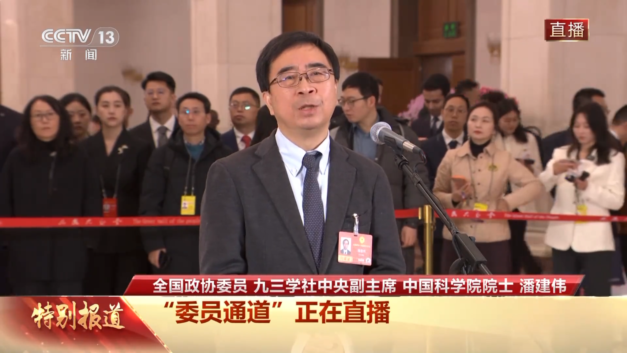 3月4日,全国政协十四届四次会议首场“委员通道”在人民大会堂举行,全国政协委员、九三学社中央副主席、中国科学院院士潘建伟接受了记者采访。