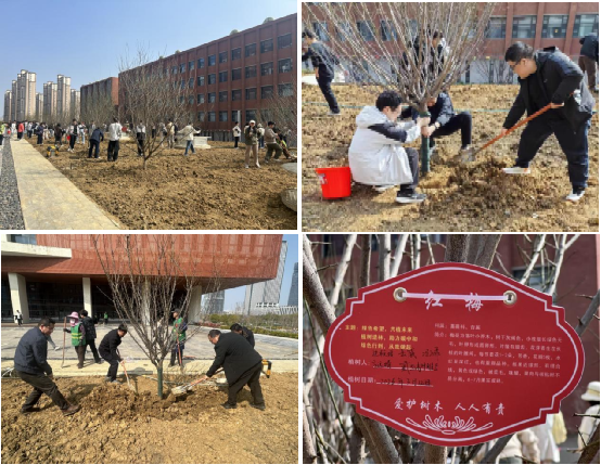 在植树现场,同学们按照前期分组有序来到指定区域,认领树苗和工具。大家三五成组、默契配合,有的挥锹培土、有的扶苗定根、有的提水浇灌,一株株树苗在大家的共同努力下稳稳扎根。完成栽种后,同学们还为树苗挂上写有寄语的铭牌,将青春愿景与对未来的希望一同留在校园。忙碌而热烈的劳动场景,既展现了青年学子团结协作的精神风貌,也成为春日校园中一道充满活力的风景线。