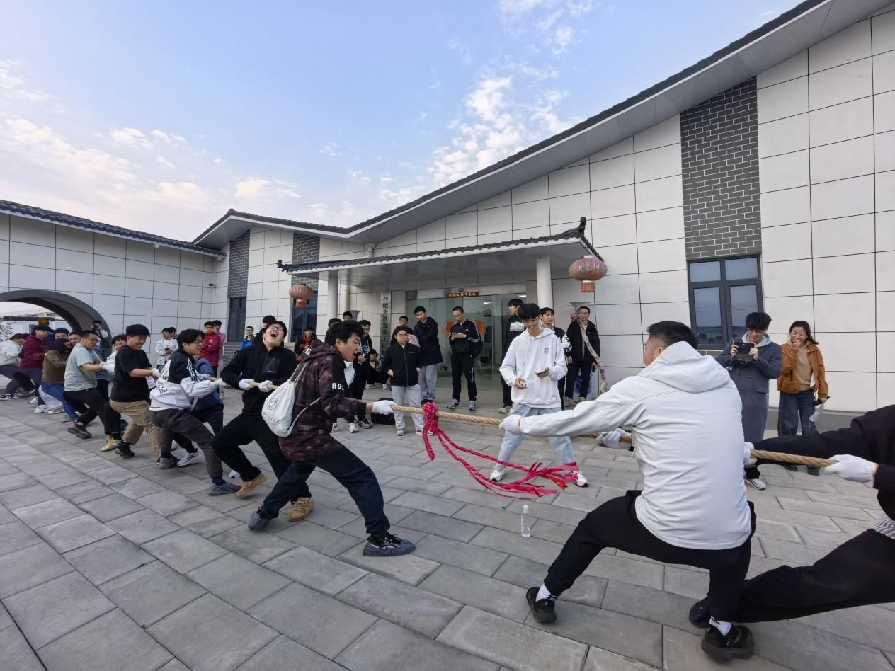 参观环节结束后,在园区指挥部前的空地上,同学们分为四组开展了活力满满的拔河比赛。同学们团结一致、挥洒汗水,现场呐喊加油声此起彼伏,劳动的汗水与竞技的乐趣交织,现场充满欢声笑语。