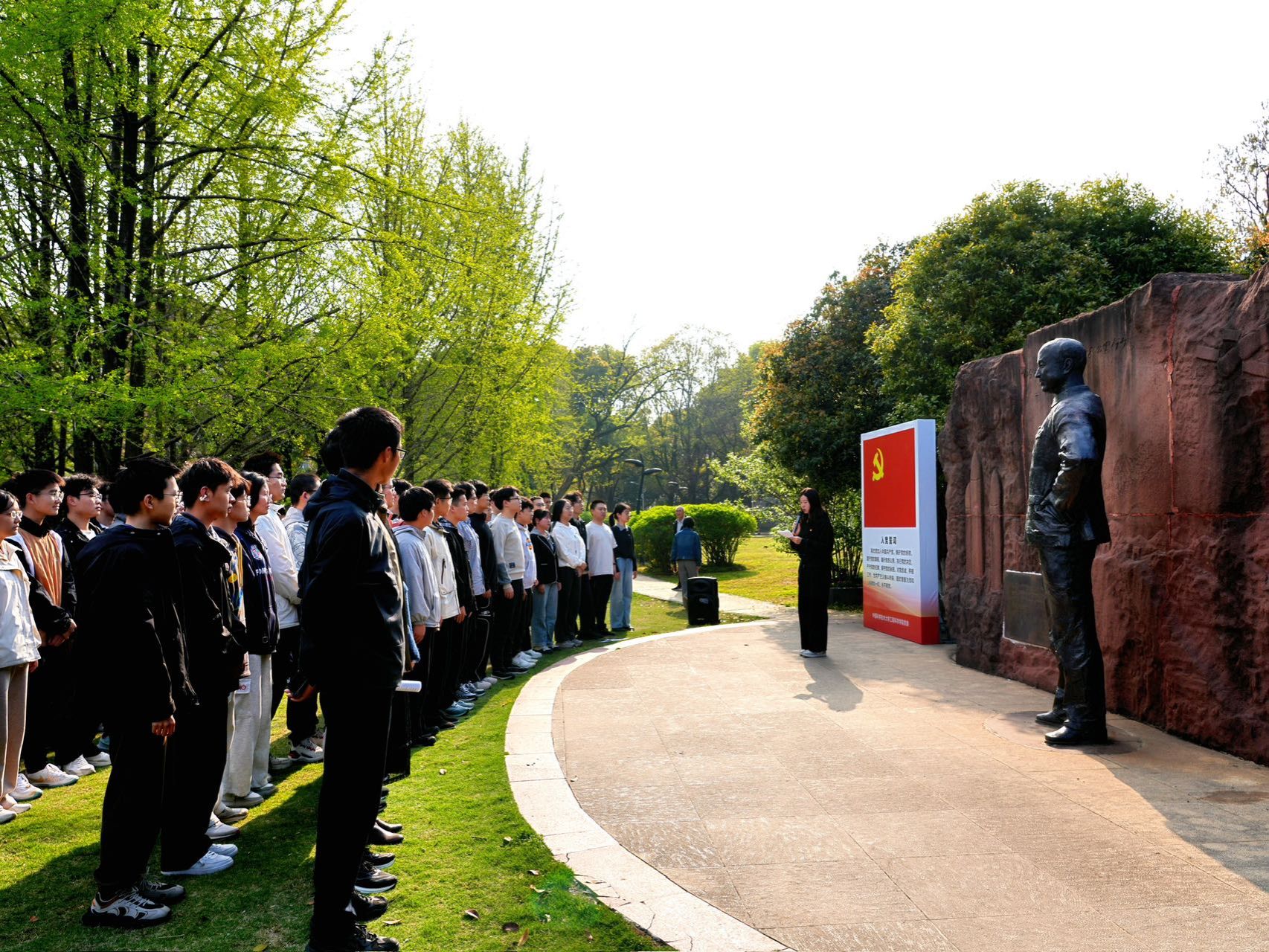 活动在庄严肃穆的氛围中拉开帷幕。全体人员肃立致敬,向钱学森先生雕像致以崇高敬意与深切缅怀。在追思先生爱国奉献、勇攀高峰崇高风范的同时,大家共同重温习近平总书记考察中国科学技术大学时的重要讲话精神,在缅怀与学习的交融中,深刻感悟老一辈科学家的家国情怀与新时代青年的使命担当。