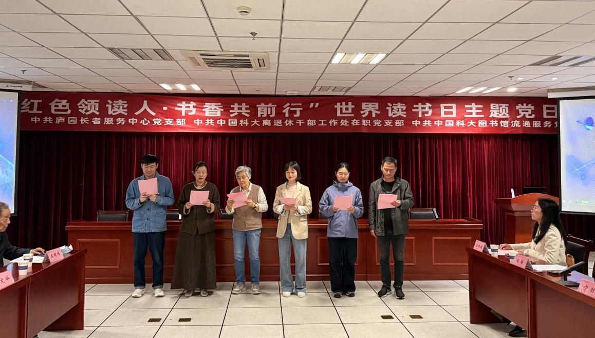 为迎接世界读书日,深化支部结对共建,4月10日下午,图书馆流通服务党支部、离退休干部工作处在职党支部与庐园长者服务中心党支部在中国科大东区新图书馆四楼报告厅联合举办“红色领读人·书香共前行”世界读书日主题党日活动,三方支部党员参加活动。