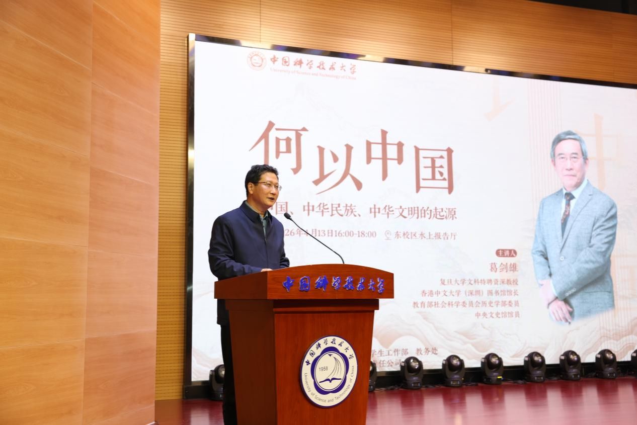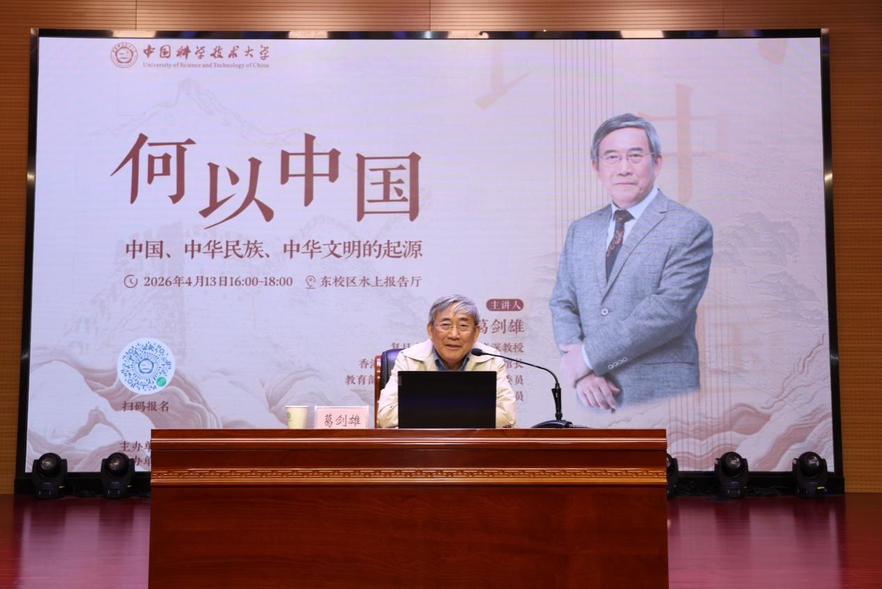 在习近平总书记考察中国科大十周年之际,4月13日下午,复旦大学文科特聘资深教授葛剑雄受邀在东校区水上报告厅作题为《何以中国:中国、中华民族、中华文明的起源》的报告,带领大家溯历史长河,领悟华夏大地何以中国、中华民族何以伟大、中华文明何以绵延,激励同学们进一步增强文化自信,努力成为堪当民族复兴重任的时代新人。校党委常务副书记蒋一主持报告会。校领导李峰、王伟和200余名师生参加报告会。