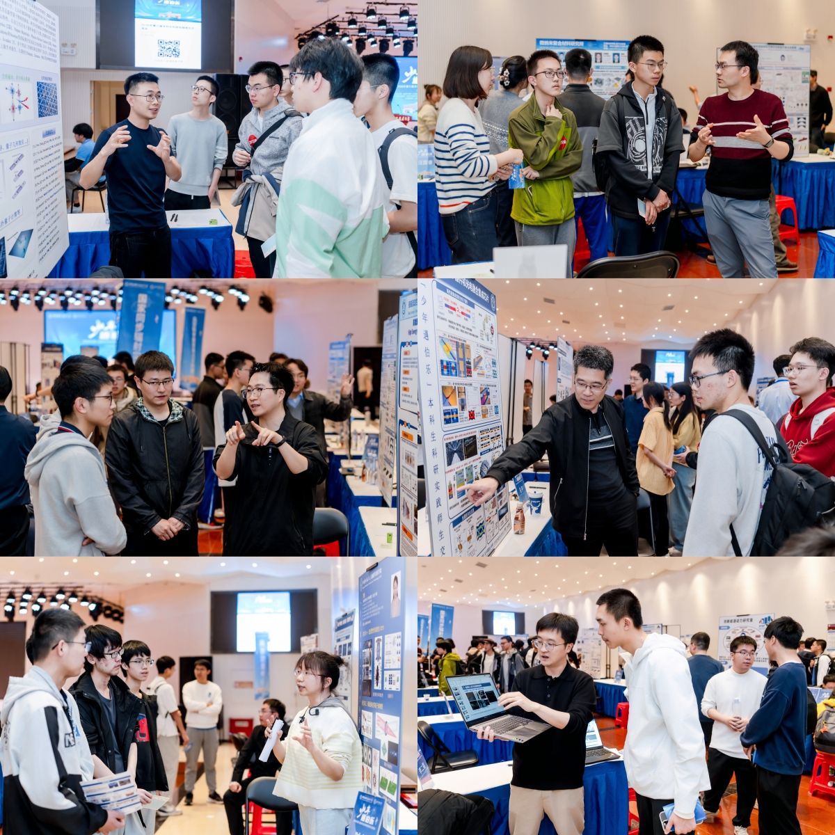 本次交流会得到了校内各单位积极响应,来自数学学院、物理学院、化学学院、工程学院、信智部、地空学院、生医部、管理学院、人文学院、环境系、核学院、同步辐射、微尺度、火灾实验室等单位的近200个课题组到场参展。为让同学们直观感受科研魅力,各课题组精心筹备,不仅展示了设计精良、内容详实的主题海报,部分团队还带来了小型实验装置与互动演示,以生动具象的形式全方位展现团队研究特色与学术风采,拉近了科研与同学们的距离。