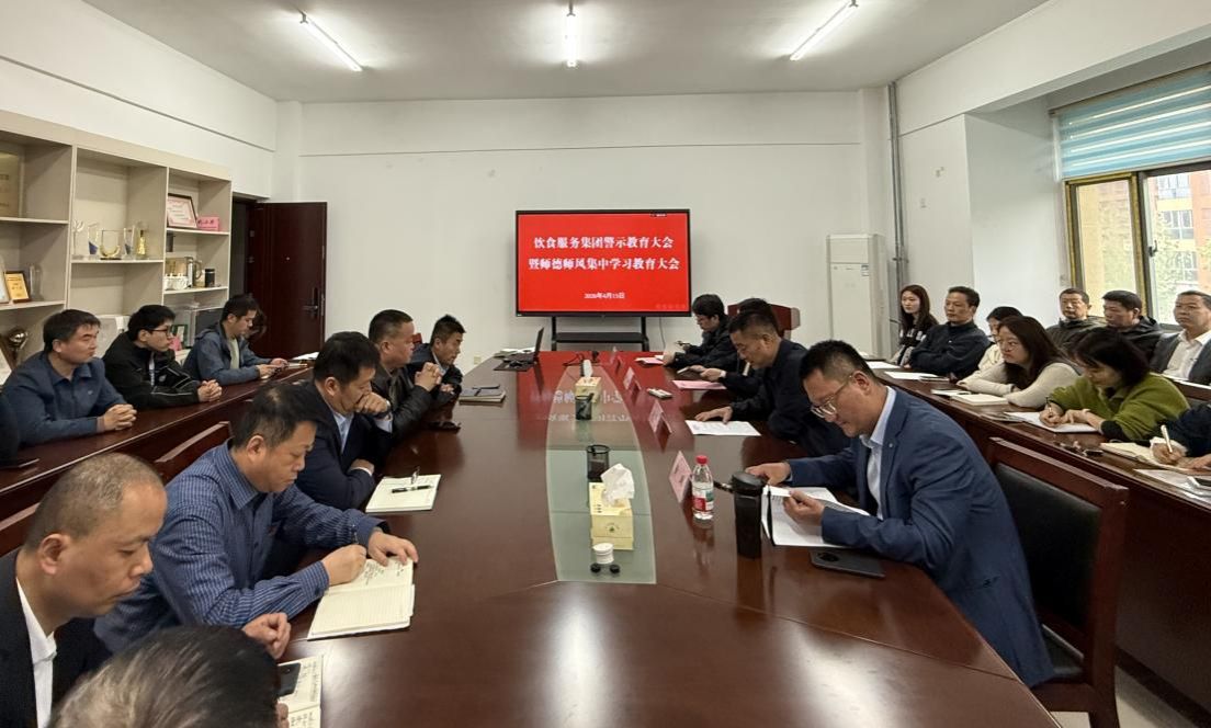 2026年4月15日下午,饮食服务集团在中区能源保障楼315会议室召开树立和践行正确政绩观学习教育警示教育会。集团直属党支部书记、总经理洪军主持会议,集团领导班子成员、全体党员,下属各单位负责人及相关重点岗位工作人员参加会议。