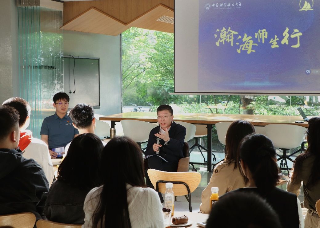 4月26日,在习近平总书记考察中国科学技术大学十周年之际,学校于东校区USTC1958举办“瀚海师生行”习近平总书记考察中国科大十周年专项活动。校长常进院士与40余名学生代表围坐交流,通过重温习近平总书记考察中国科大重要讲话精神、解答成长困惑等环节,引导青年学子牢记嘱托、科教报国,为强国建设凝聚青春力量。活动由物理学院天文学系2024级博士研究生刘千硕主持。