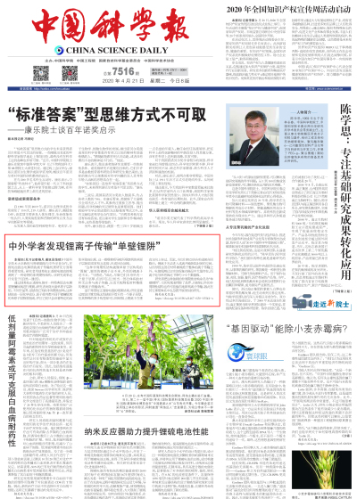 《中国科学报》 (2020-04-21 第1版 要闻)