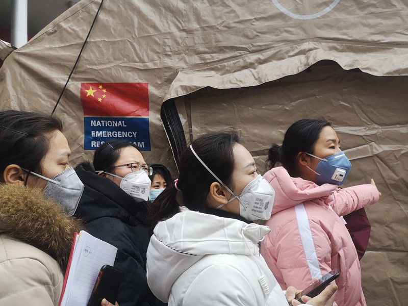 该院第一批医疗队员中,8名重症监护专科护士在金银潭医院重症监护病房已经工作了8天。第二批医疗队员刘媛说:“我们上午到达武汉客厅,一眼就看到战友们奋战的金银潭医院,虽然有路相隔,但我们感觉一下就有了力量。亲爱的战友们,我们一直在一起!”