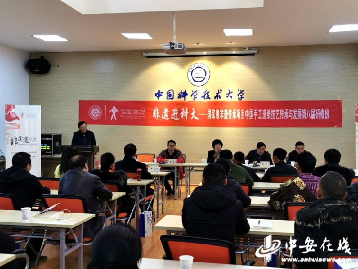 “中国非物质文化遗产传承人群研修培训计划”的启动,是当代中国非遗保护与发展的创新战略部署。据悉,2015年夏,文化部实施了“中国非物质文化遗产传承人群研修研习培训计划”进高校先行试点。2016年,工作在全国正式展开,中国科学技术大学被列为全国首批8所研修项目实施单位之一,中国科学技术大学人文与社会科学学院、中国科学技术大学手工纸研究所具体承办实施。从2016年5月开始关于手工造纸相关主题的研修班,已经成功地举办了七届,已有142位手工造纸非遗传承人顺利结业。