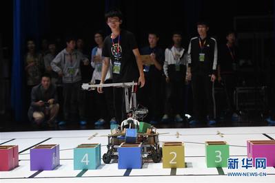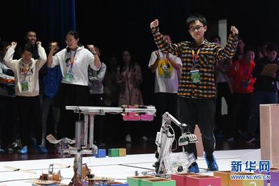 10月27日,在位于合肥的中国科学技术大学,大学生在庆祝自己队伍的机器人获胜。 当日,中国科学技术大学第十九届RoboGame机器人大赛举行,该校12支学生代表队带着他们设计和制作的机器人参赛,本次比赛的主题为“越障救援”。 新华社记者张端摄