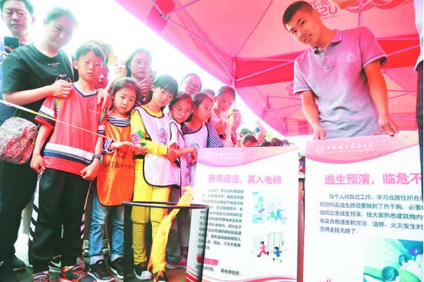 5月19日,小朋友们在中国科大西校区观赏科普实验。2019年中国科学技术大学科技活动周于5月18日拉开帷幕。活动现场热闹非凡,中小学生在科普志愿者的演示中体验科技魅力,收获满满。记者 宋炎骏 摄