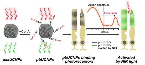 创新的上转换纳米颗粒修饰技术及其在视网膜的功能实现。(受访者供图)