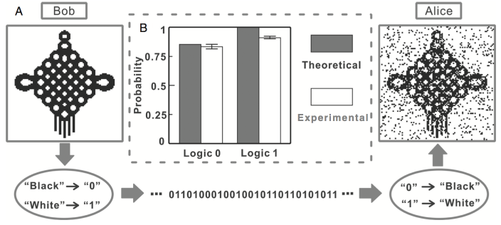 以日常生活的经验,任何信息的传输都需要通过实物载体,如信件、电磁波等。然而,在2013年,国际著名量子光学专家M. Suhail Zubairy小组却提出一个与人们日常生活中形成的直观认识相悖的“反事实直接量子通信”方案,即在通信双方(假定为Bob和Alice)之间没有实物粒子的交换,也可以实现信息的传递。日前,中国科学技术大学潘建伟教授及其同事彭承志、陈宇翱等和清华大学马雄峰合作,在国际上首次实验实现了反事实直接量子通信,在实验中演示了图像的反事实传输。相关成果发表在国际权威学术期刊《美国科学院院报》上。