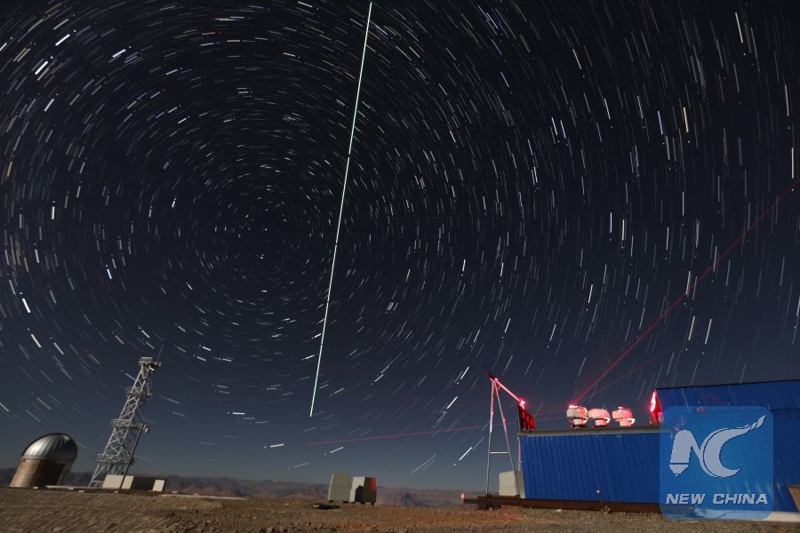 Composite photo taken on Dec. 10, 2016 shows a quantum communication ground station in southwest China's Tibet Autonomous Region. (Xinhua/Jin Liwang)