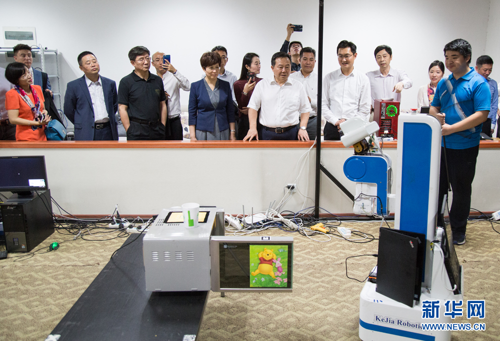 9月13日,腾讯公司董事会主席兼首席执行官马化腾现身合肥,在中国科学技术大学参观体验量子信息与量子通信实验室、天文实验室、类脑智能技术及应用国家工程实验室、机器人实验室等高科技研究装备和技术。(姚琼 摄)