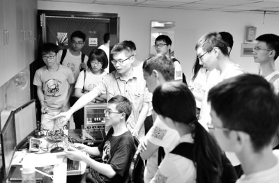 7月18日起,中国科学技术大学举办为期一周的优秀大学生夏令营,共有来自全国知名高校的1700余名学生参加。夏令营全程免费,旨在激发同学们对科学的兴趣。营员们将走进实验室、参观科学仪器,聆听科学报告并与科学家直接对话。图为营员参观中科大近代物理系粒子物理电子学实验室。