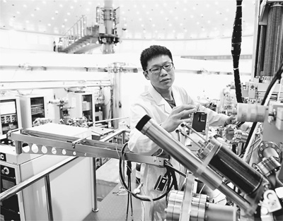 1月21日,一名工作人员在安徽合肥的国家同步辐射实验室操作实验设施。