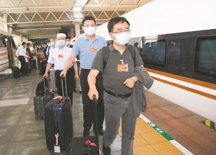 5月19日,住皖全国政协委员从合肥南站乘车赴京,出席全国政协十三届三次会议。 本报记者 吴文兵 摄