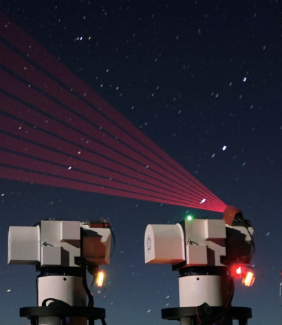 2016 年12 月10 日,在西藏阿里观测站,“墨子号” 量子科学实验卫星过境,科研人员在做实验(合成照片)。