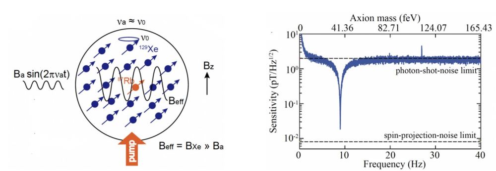 基于新的物理机制,研究人员进一步设计出磁场量子放大器,将原子磁力计的磁探测灵敏度提高了100倍。理论预测,暗物质与原子核会发生极微弱的相互作用,这种相互作用相当于在原子核自旋上施加一个微小磁场——赝磁场,利用超灵敏磁场探测装置可以检验赝磁场,以此寻找暗物质粒子存在的迹象。