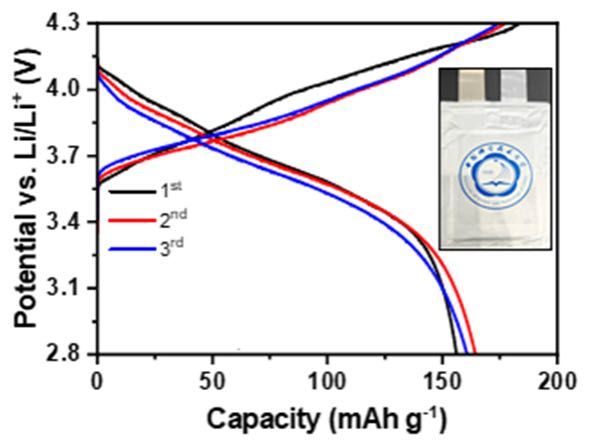 图:由锂锆铝氯氧组成的软包全固态电池的循环性能