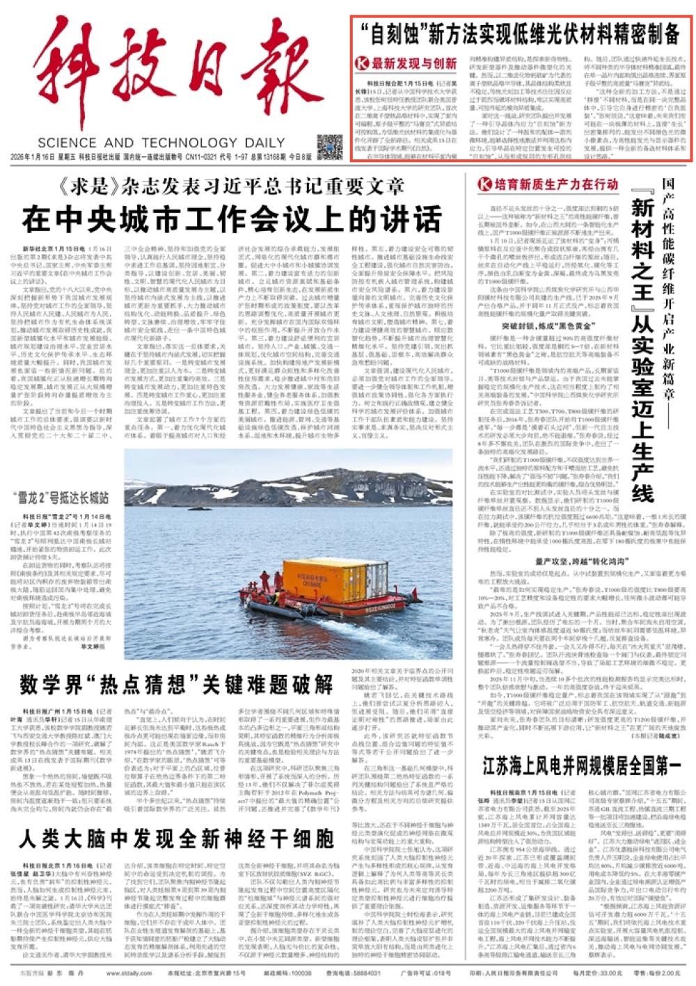 原文链接:https://epaper.stdaily.com/statics/technology-site/index.html#/home?isDetail=1¤tNewsId=f1825743f70a4783b2200f760870bb90¤tVersionName=%E7%AC%AC01%E7%89%88%EF%BC%9A%E4%BB%8A%E6%97%A5%E8%A6%81%E9%97%BB¤tVersion=1&timeValue=2026-01-16