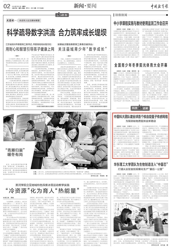 【中国教育报】中国科大团队建全球首个核自旋量子传感网络 为探测暗物质提供全新路径