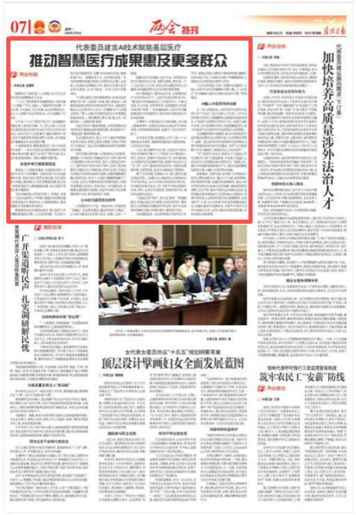 打破数据壁垒、赋能基层医疗、助力中医药传承创新……多位代表和委员围绕调研中发现的痛点难点问题,建言“AI+医疗”更好发展,助力医疗服务提质增效,为群众健康保驾护航。