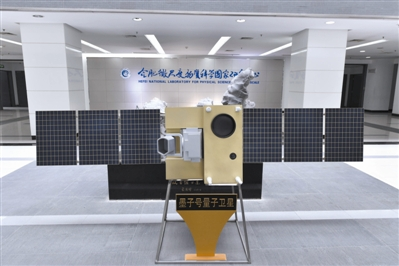 在合肥微尺度物质科学国家研究中心拍摄的“墨子号”量子卫星模型