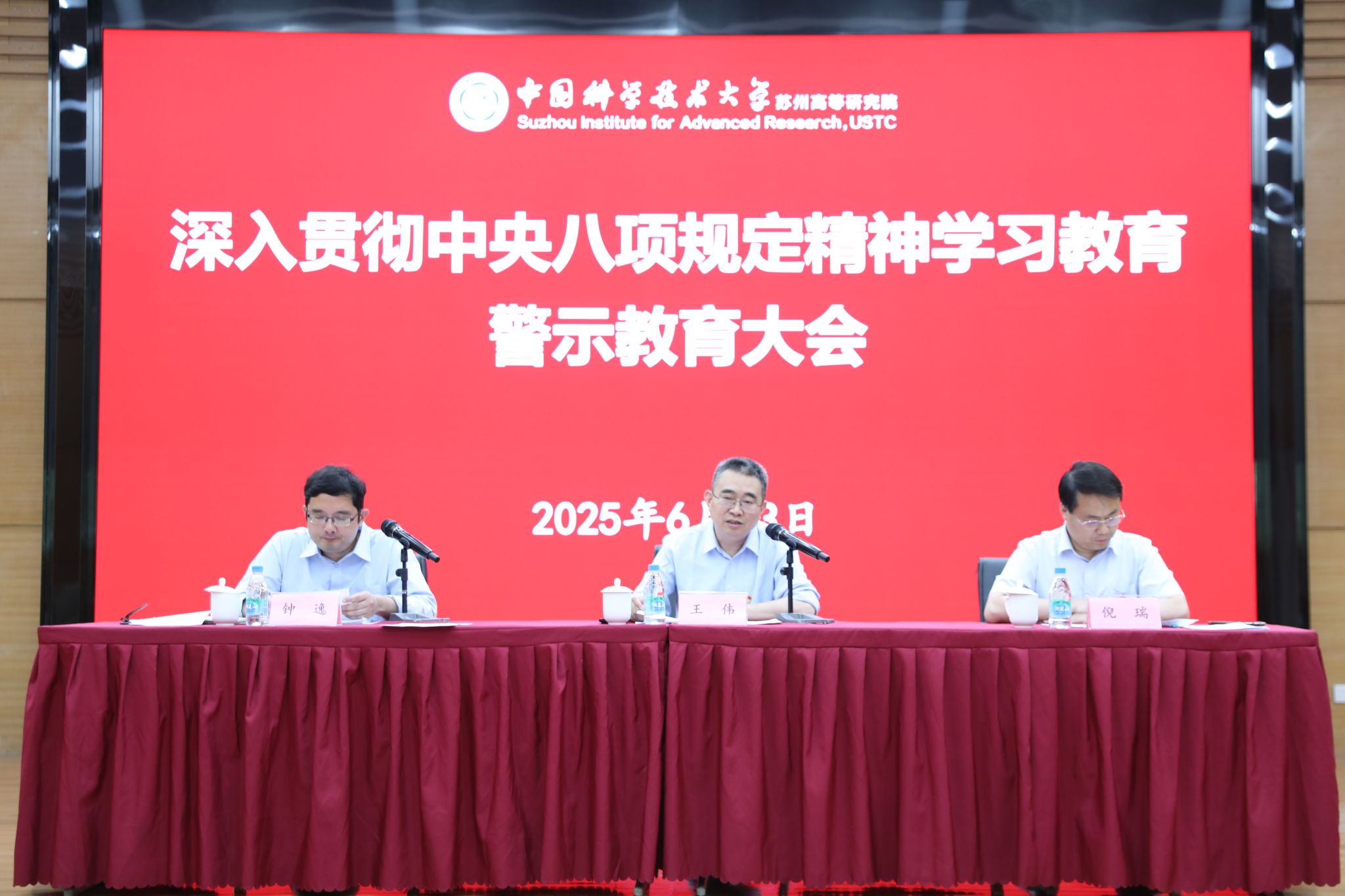 6月13日下午,苏州高等研究院在唯真楼一楼报告厅召开深入贯彻中央八项规定精神学习教育警示教育大会,校党委常委、苏州高等研究院党委书记王伟主持会议并讲话,在院领导干部、党委委员、教职工及学生党支部书记200余人参加会议。