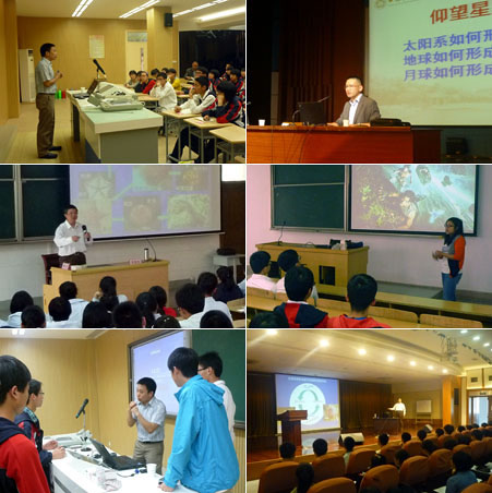 汪毓明教授为师生讲述了太阳风暴的产生及其对地球和人类活动的影响,向斌教授展示了精彩的微观世界并介绍了纳米级距离的测量方法,黄方教授介绍了大众关注的PM2.5、土壤污染等众多环境问题的成因及保护地球环境的重大意义,毛竹教授介绍了地球的内部构造并用通俗易懂的语言介绍了地球科学的研究方向,沈显生教授则揭示了生物进化过程中形成物种和生态系统复杂多样性的奥秘,报告内容深入浅出,图片视频丰富翔实,语言形象生动,深受老师和同学们欢迎。