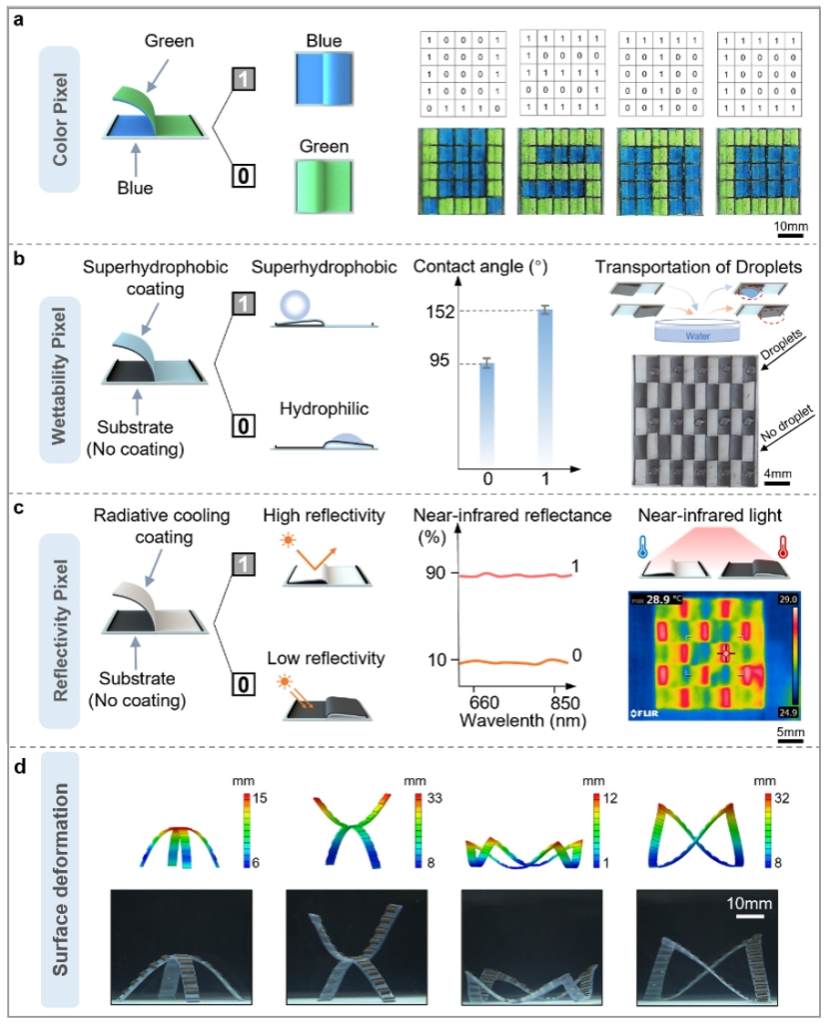 图2.表面颜色、润湿性、反射率以及变形的像素级调控