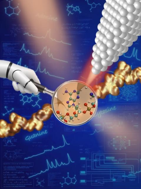 图1.机器学习辅助TERS识别长链DNA分子内单个碱基结构的艺术渲染图(AI辅助生成)