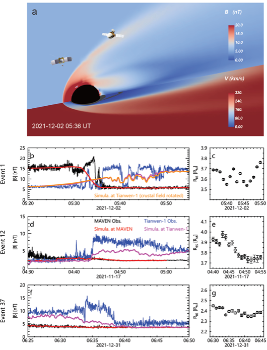 该研究基于我国天问一号的自主探测数据,特别是中国科学技术大学负责研制的火星磁强计所提供的磁测数据,揭示了火星空间环境对弱太阳风扰动的响应机制。该成果完善了对太阳风与火星空间环境相互作用机制的认识,深化了关于太阳风与非磁化行星相互作用过程的理解。天问一号火星磁强计由汪毓明教授领衔的中国科大空间载荷团队研制,2021年11月在环火轨道正式长期开机并持续工作至今,支撑了国内外多个研究团队的相关工作,至今已产出和待产出近30项原创性成果(https://space.ustc.edu.cn/dreams/tw1_momag/),标志着我国首次实现了火星空间磁场的高精度测量。