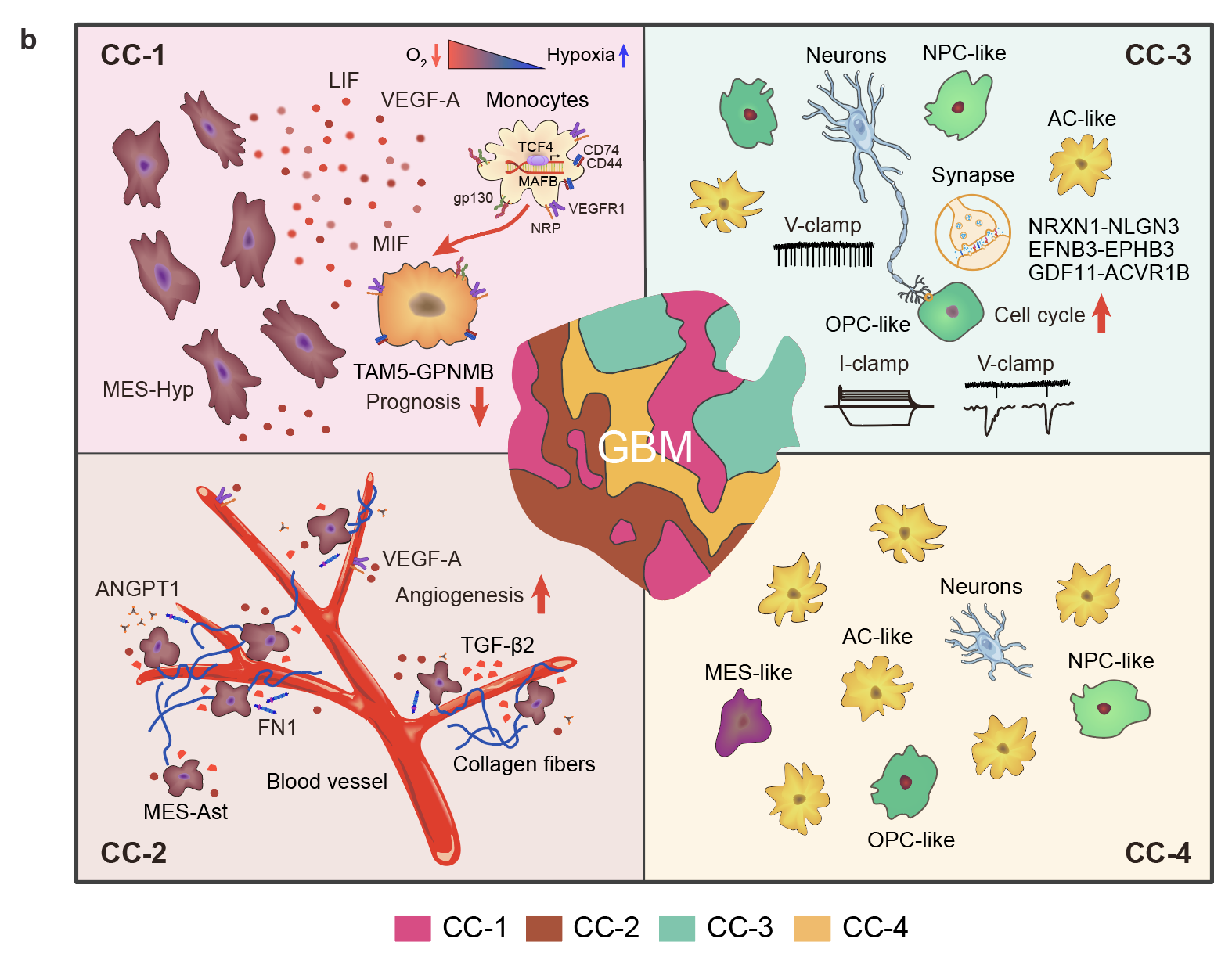 多组学解析GBM细胞群落(简称CC)的组成、互作和空间分布