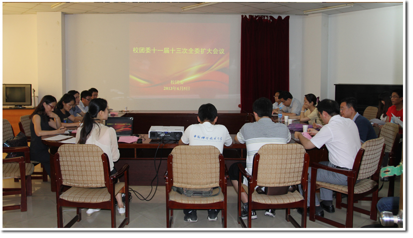 6月5日下午,校团委召开十一届十三次全委扩大会议,校团委常委、委员、分团委(团总支)书记、校团委工作人员等团干部参加了会议。会议由校团委副书记杨晓果主持。