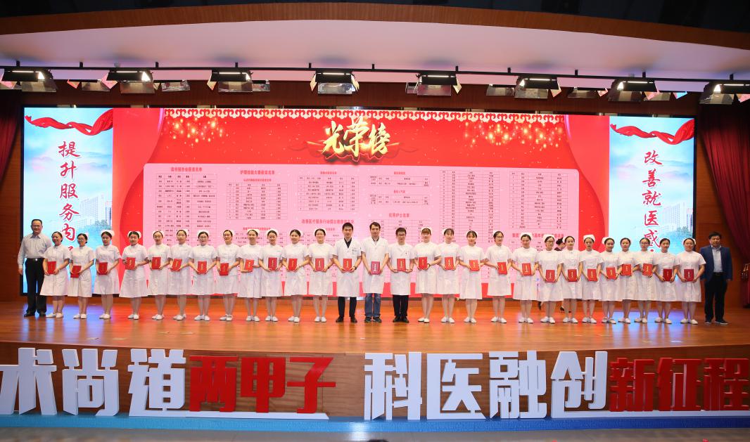 南区副院长王锦权宣读了护士节表彰名单,院领导为读书报告会20名优秀选手、护理技能大赛28名获奖选手、改善医疗服务行动擂台赛11名优秀选手、集团40名优秀护士、8名坚守临床一线30年护士及20名优秀护士长颁发了荣誉证书并给予鼓励。