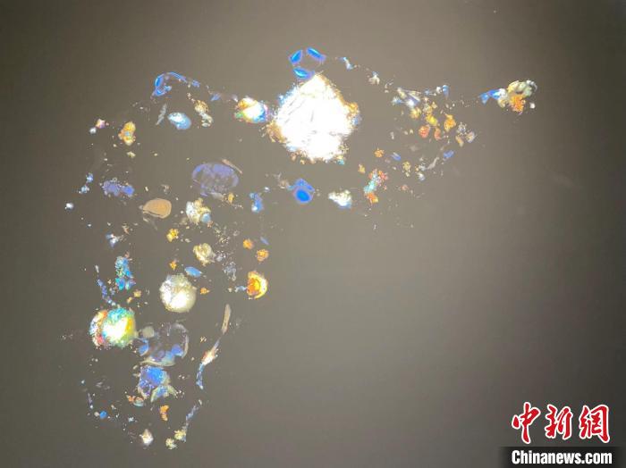 月壤颗粒的正交偏光显微照片。 吴兰 摄