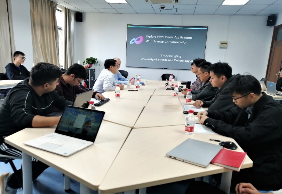 科技传播与科技政策系主任周荣庭教授首先介绍了25系并作题为“用科学传播的视角探索新媒体的应用”的汇报,主要介绍了我系近几年来在科普创意产业实践的发展以及成就,包括“美丽科学”、“消失的世界”以及新媒体研究院参与的“墨子号AR体感”,从科学传播的视角将科学与人文更好地结合在一起。