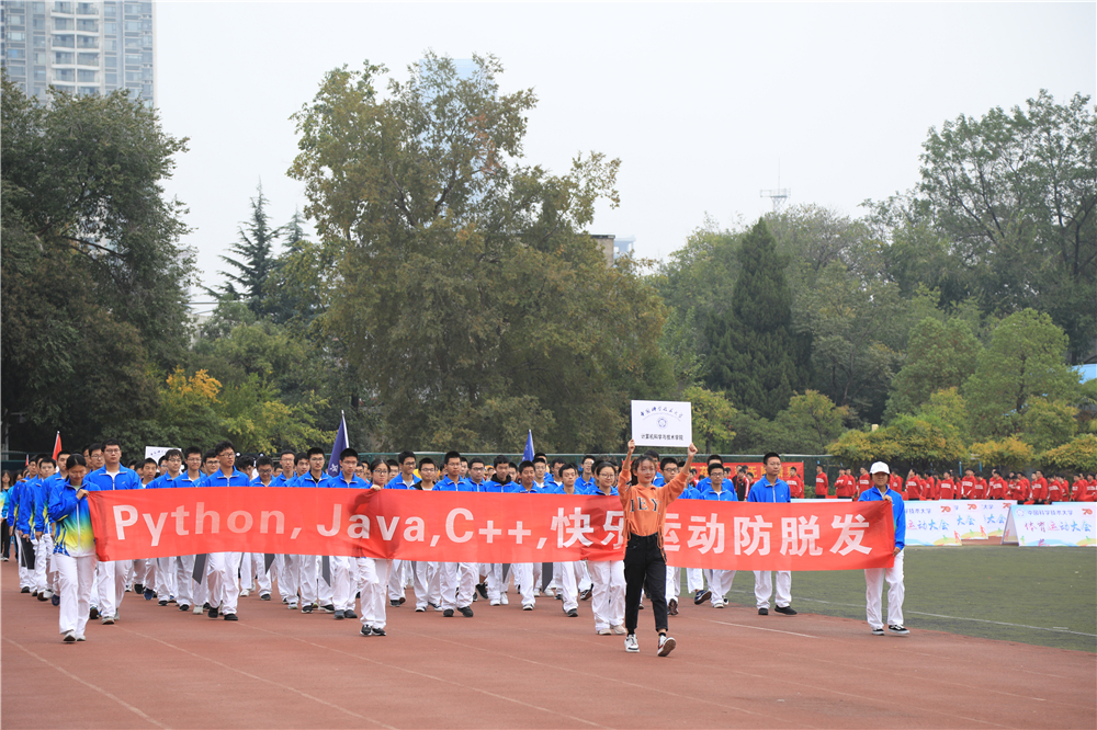 国旗护卫队首先擎着国旗和校旗、迈着正步为运动员入场式揭开了序幕。随后,来自全校各院系、国家(重点)实验室、机关、直属单位的代表队迈着整齐的步伐依次入场,向现场观众展示中国科大人的精神风采。各代表队充分发挥智慧,喊着响亮的口号,借助彩旗、玩偶等道具,呈现出USTC等各具特色的队列方阵,展现了科大人昂扬的精神风貌和拼搏的精神。
